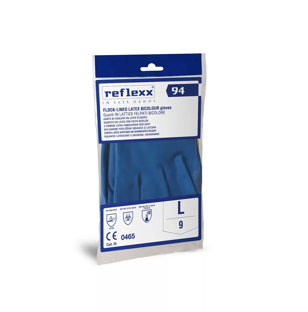 Reflexx R94 – háztartási latex védőkesztyű, sárga/kék színben