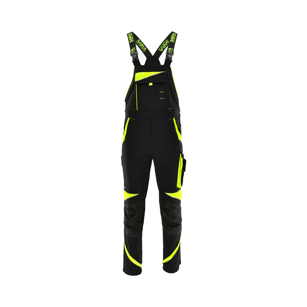 Karcsúsított szabás, rugalmas Canvas anyag, funkcionális kialakítás. - rugalmas, állítható nadrágtartó - fényvisszaverő elemek - térdrész tartós polyester anyagból készült - zsebfedős mellzseb tépőzárral - két első zseb - zollstock számára kialakított zseb - széles tépőzáras oldalzseb a bal lábszáron egy további cipzáras elemmel - telefon számára kialakított zseb - zsebfedős farzsebek - térdelőpárna számára kialakított térdzseb - az összes zseb tépőzárral zárható