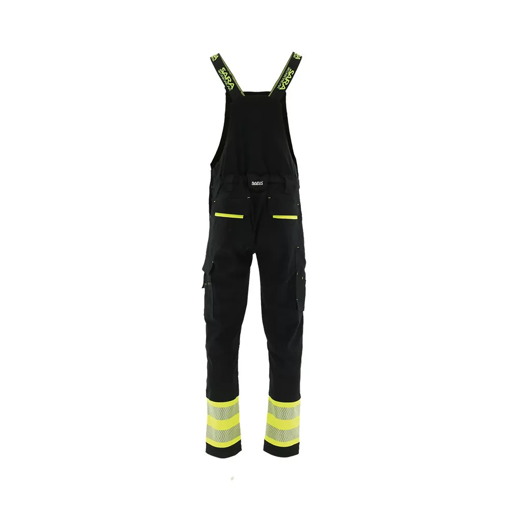 Karcsúsított szabás, rugalmas anyag, funkcionális kialakítás. A lábszárakon jólláthatósági modullal, és 5 cm széles szegmentált fényvisszaverő szalagokkal.