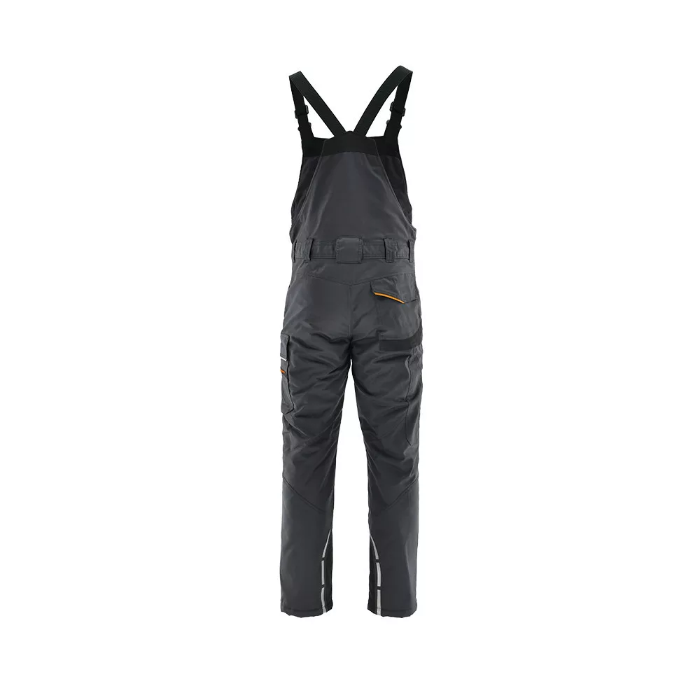 Egyenes szabás, funkcionális kialakítás. - fényvisszaverő elemek - rugalmas, állítható nadrágtartó - bélelt, meleg anyag - cipzáras mellzseb - két klasszikus első zseb - zollstock számára kialakított zseb - multifunkcionális oldalzseb egy cipzáras rekesszel - egy zsebfedős farzseb a jobb oldalon - állítható derékbőség
