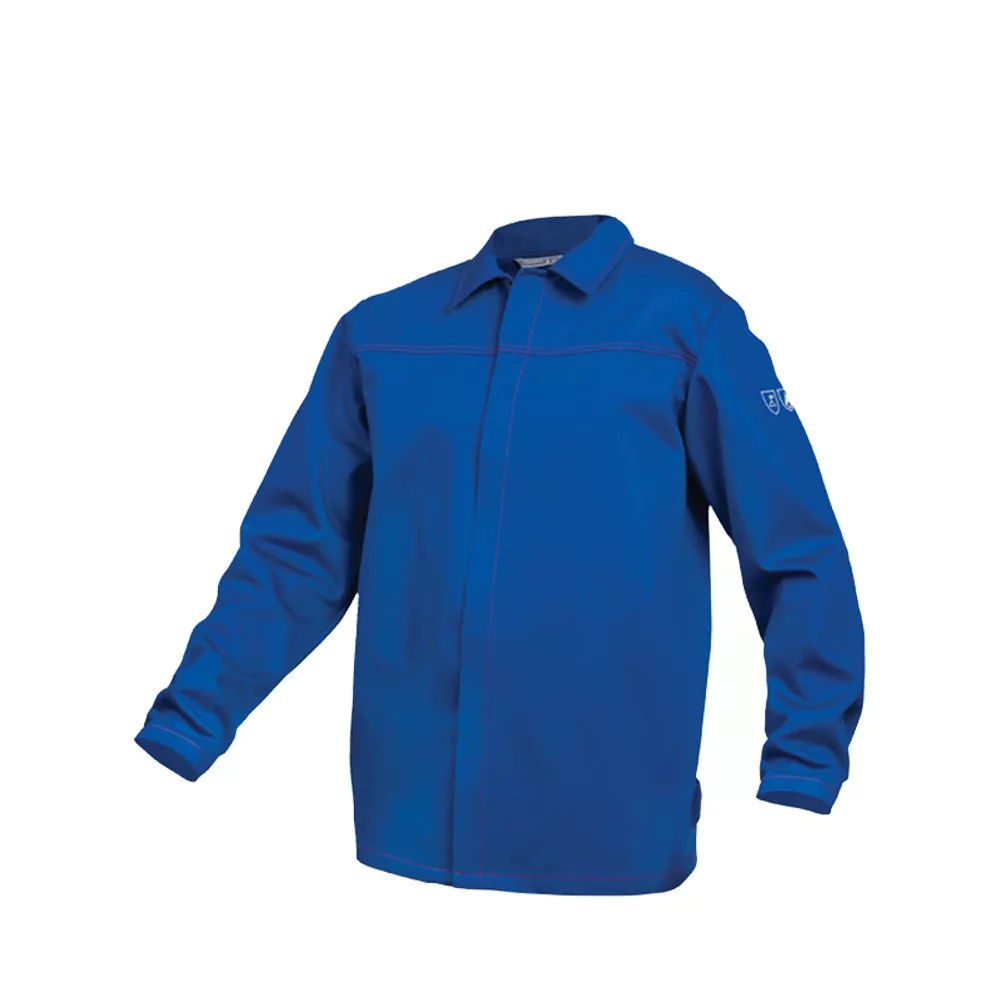 Egyenes szabás, funkcionális kialakítás. - sugárzó hőnek ellenálló (hegesztő) - lángálló - gombos záródás - csípőnél tépőzáras állítási lehetőség - tépőzáras belsőzseb - gombos mandzsetták - fedővarrás lángálló szálakkal - EN ISO 11611:2015 Klasa 1, A1+A2 - EN ISO 11612:2015 A1+A2, B(1), C(1), E(1), F(1)