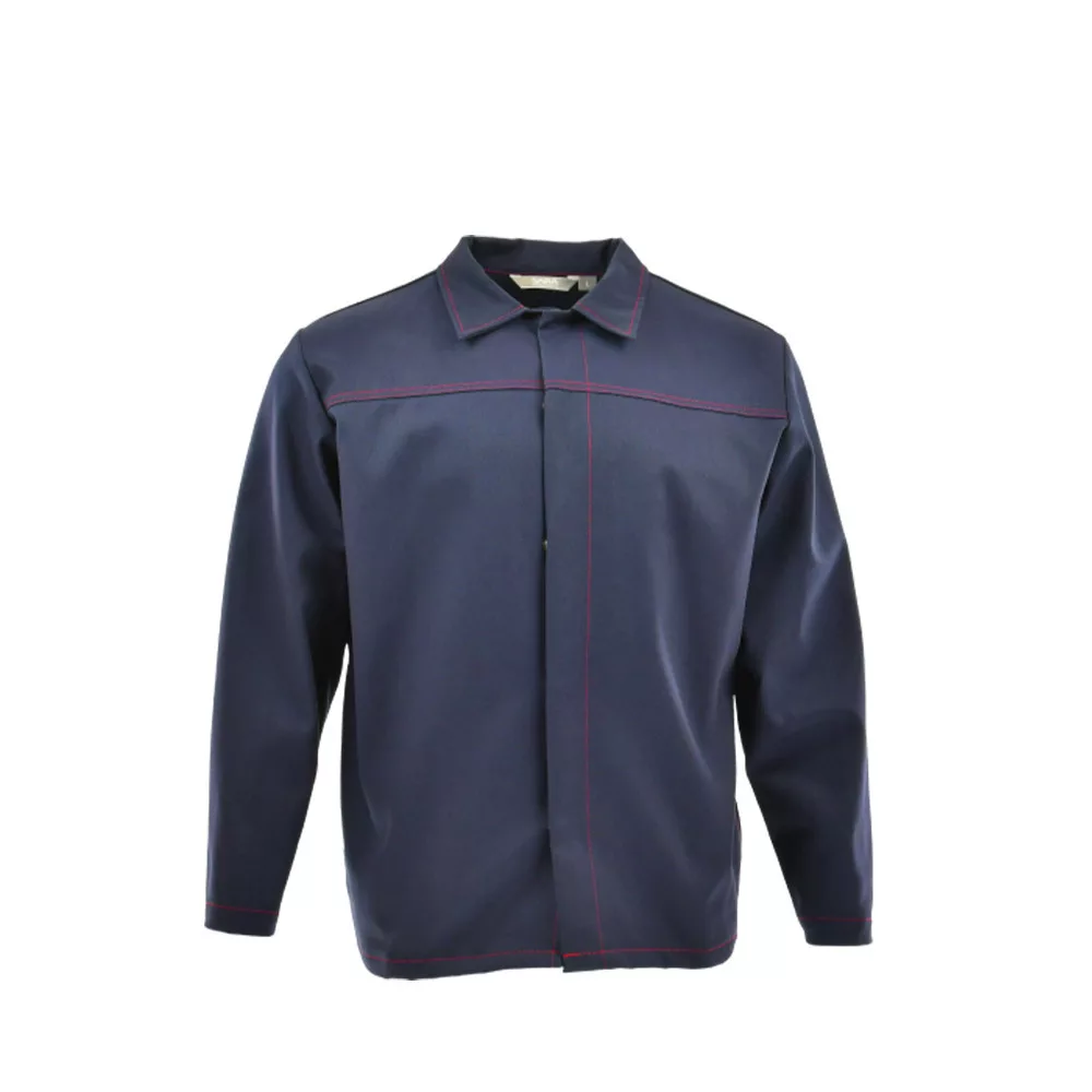 Egyenes szabás, funkcionális kialakítás. - antisztatikus - lángálló - sugárzó hőnek ellenálló (hegesztő) - patentos záródás - galléros nyak - két oldalzseb - tépőzáras belső zseb - patentos mandzsetták - a csípőnél tépőzáras állítási lehetőség - fedővarrás lángálló szálakkal - EN 1149-5:2018 - EN ISO 11611:2015 Klasa 1, A1+A2 - EN ISO 11612:2015 A1+A2, B(1), C(1), E(1), F(1)