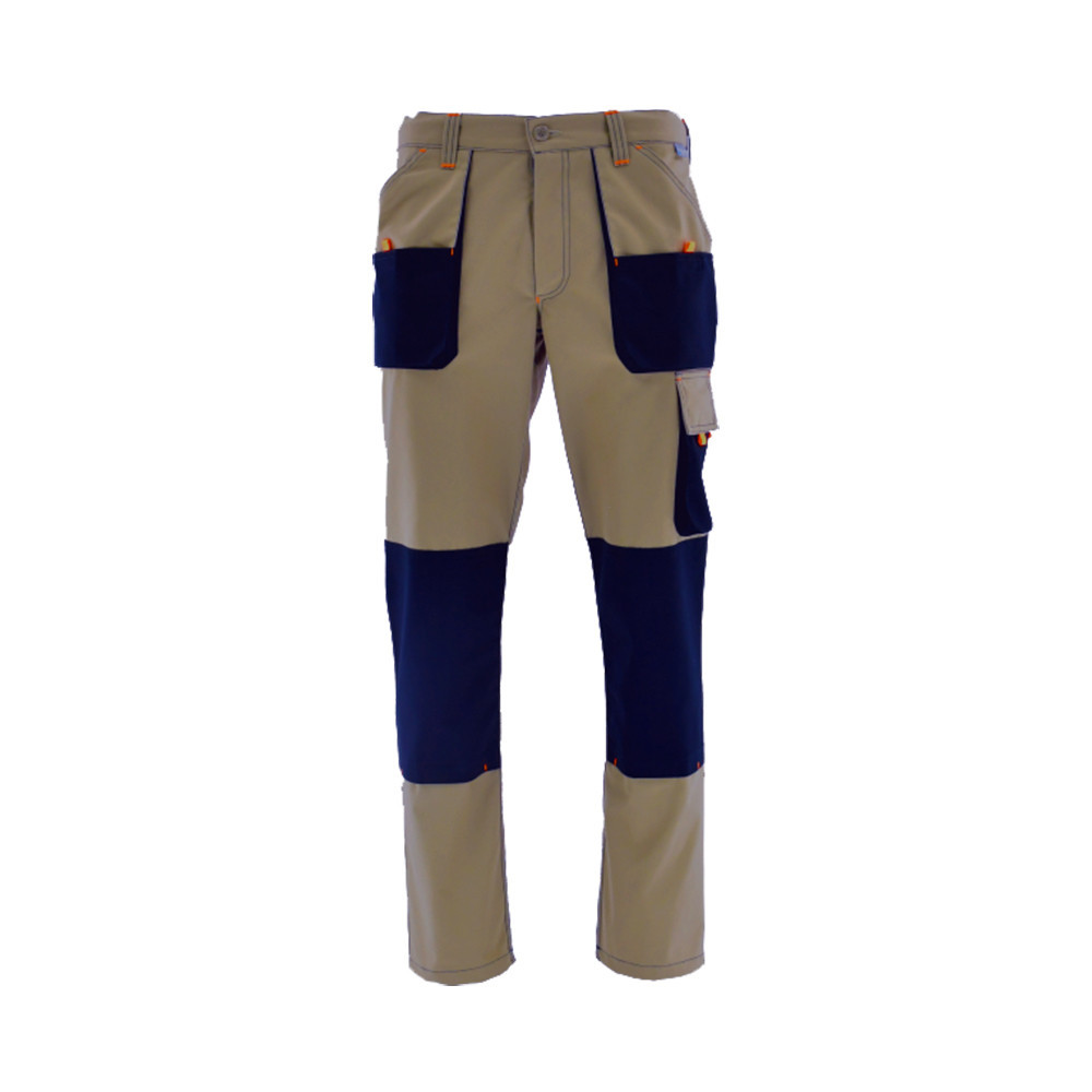Egyenes szabás, funkcionális kialakítás. - gombos rögzítés - gumírozott hátsó derékrész - két rávarrt első zseb - két rávarrt zsebfedeles farzseb - két oldalzseb - zollstock számára kialakított dupla zseb - térdelőpárnának kialakított tépőzáras térdzsebek - tripla varrás a szárak belső felén és az ülepen