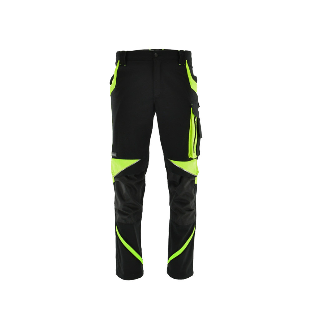 Karcsúsított szabás, rugalmas Canvas anyag, funkcionális kialakítás. - fényvisszaverő elemek - magasított derékrész, mely guggolás és előrehajlás esetén is takar - integrált gumibetét két oldalt a tökéletes illeszkedésért - térdrész tartós polyester anyagból készült - két zseb - zollstock számára kialakított zseb - széles tépőzáras oldalzseb a bal lábszáron egy további cipzáras elemmel - telefon számára kialakított zseb - zsebfedős farzsebek - térdelőpárna számára kialakított térdzseb - az összes zseb tépőzárral zárható