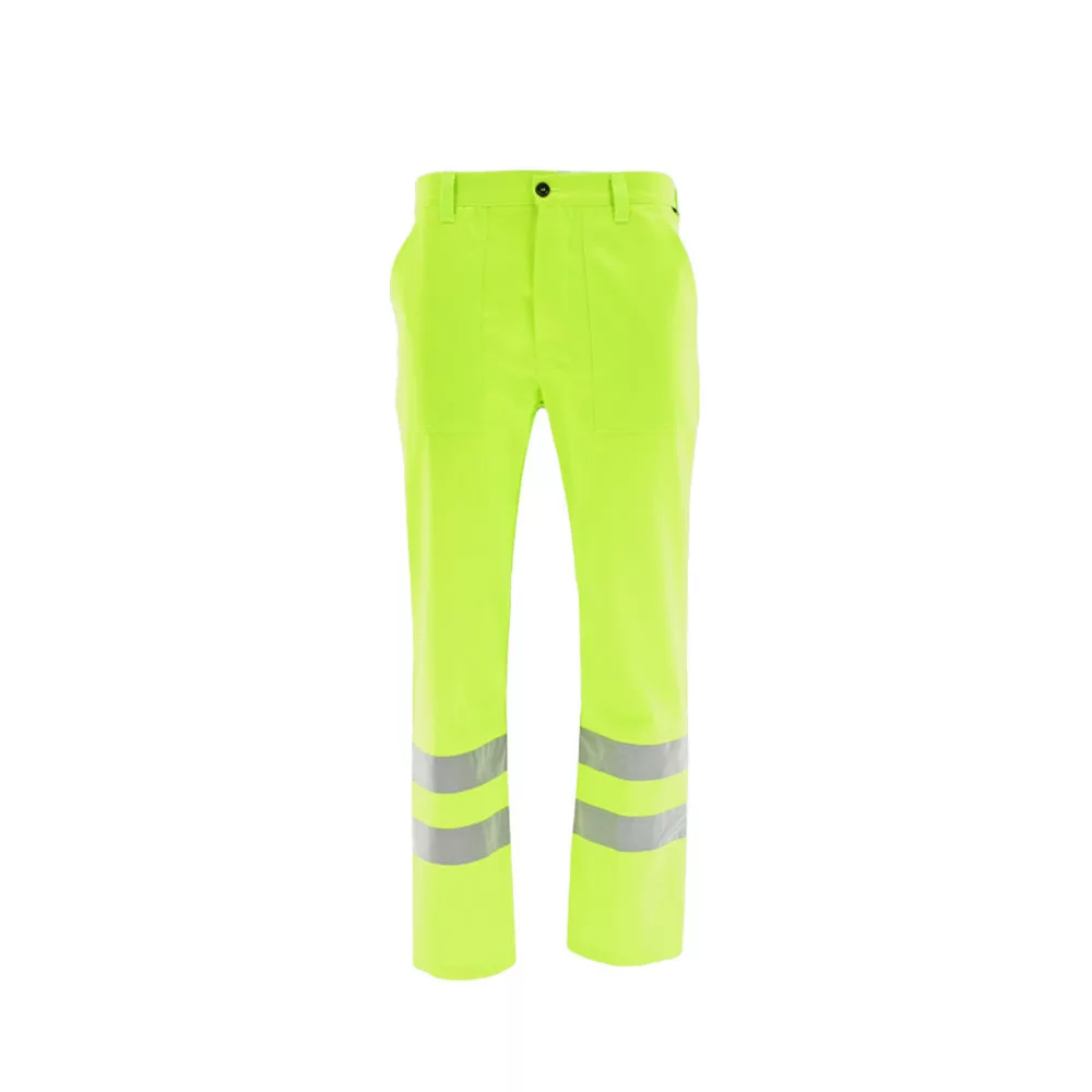Egyenes szabás, funkcionális kialakítás. - fényvisszaverő szalagok - gumírozott hátsó derékrész - két rávarrt zseb - zollstock számára kialakított zseb a jobb száron - tripla varrás a szárak belső felén és az ülepen - EN ISO 20471:2013 (3-as osztály)