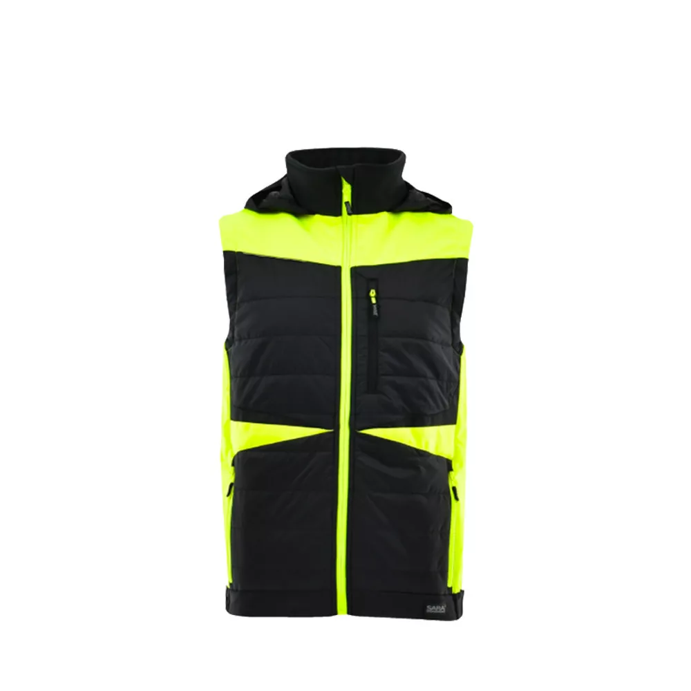 Sara Comfort Plus Hybrid kapucnis bélelt mellény fekete - sárga