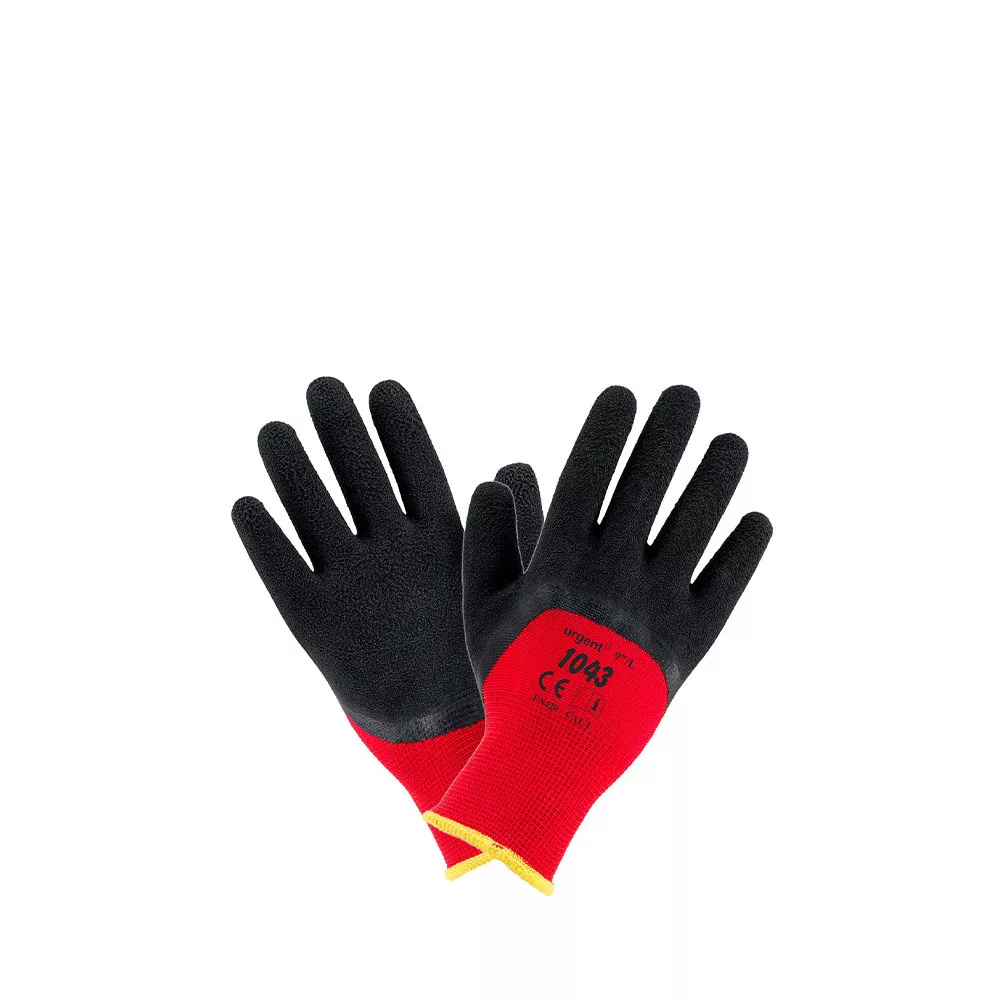 Poliészter alapanyagra ökölcsontig mártott védőkesztyű, vékony latex mártással és gumírozott mandzsettával.