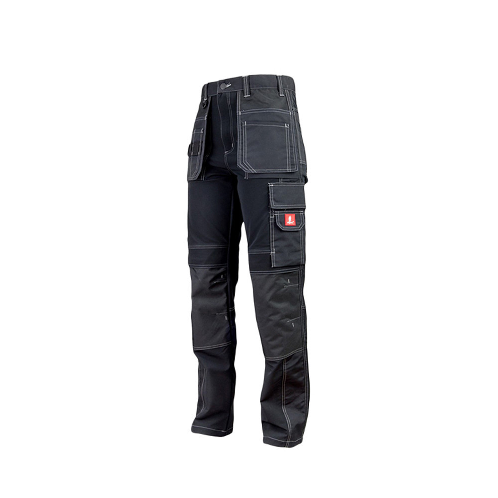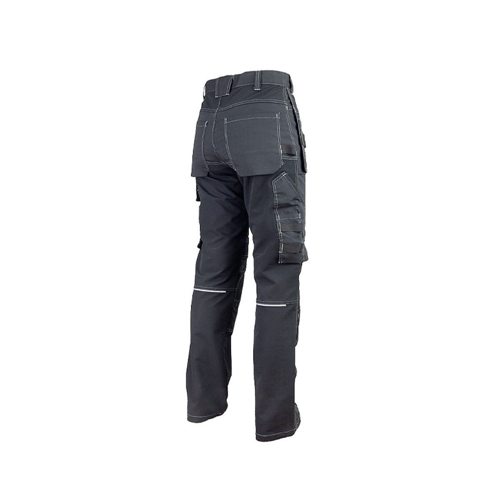 Egyenes szabás, funkcionális kialakítás, OXFORD anyaggal erősített RIPSTOP anyag. - fényvisszaverő elemek - mély, rávarrt első zsebek - lengő zsebek (nem levehető) - rávarrt farzsebek - zollstock számára kialakított zseb - rávarrt zsebfedős oldalzseb - telefon számára kialakított zseb - szerszámtartó hurkok