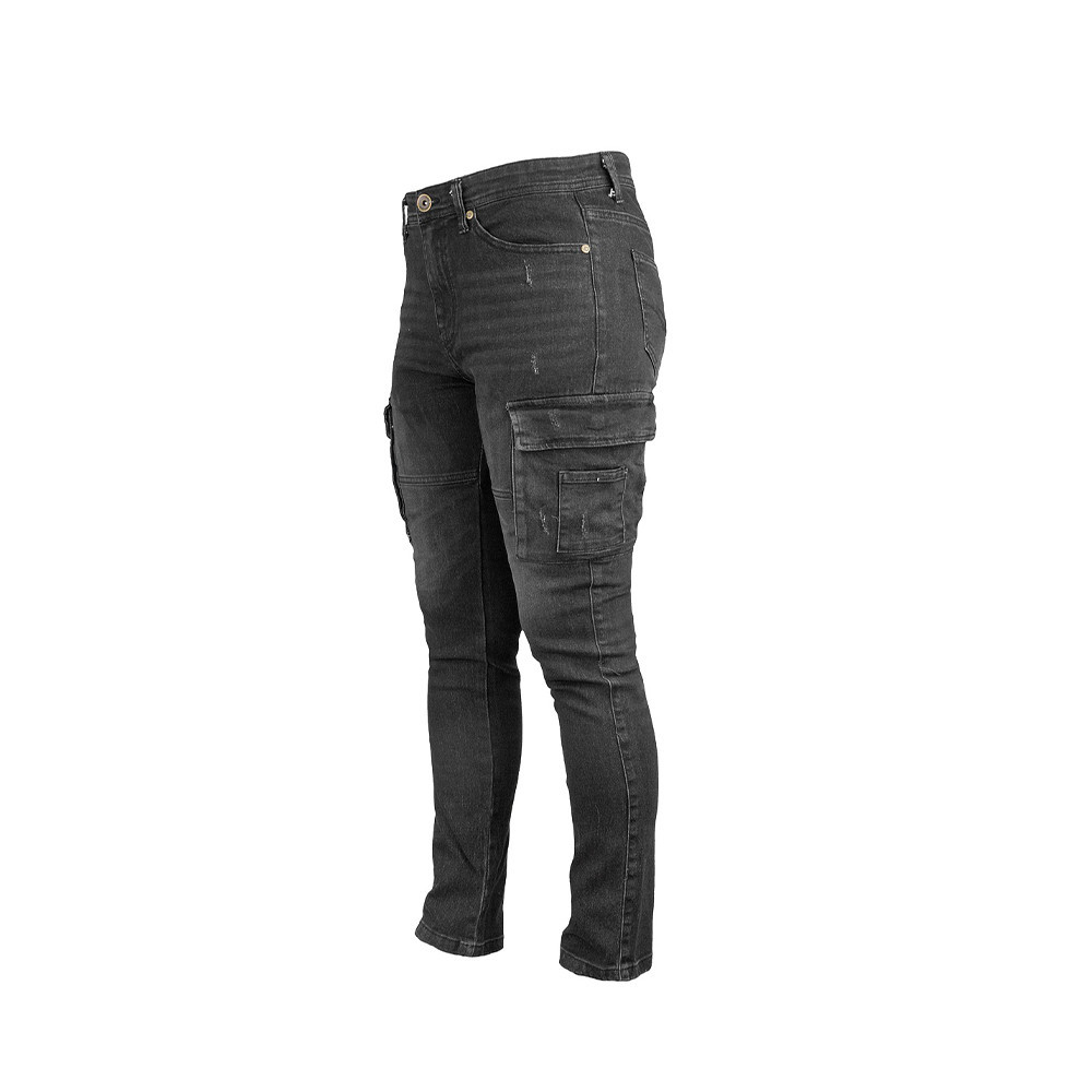 Cargo nadrág, karcsúsított szabás, rugalmas farmer anyag koptatásokkal