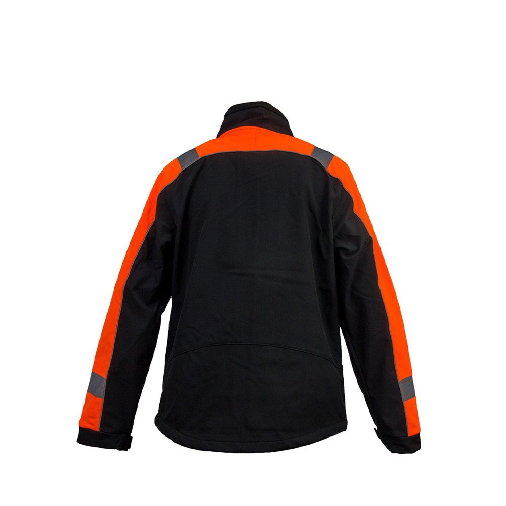 Egyenes szabás, funkcionális kialakítás, SOFTSHELL anyag. - fényvisszaverő szalagok - cipzáras záródás - állógalléros nyak kialakítás - két cipzáras első zseb - egy cipzáras mellzseb - tépőzárral állítható mandzsetták