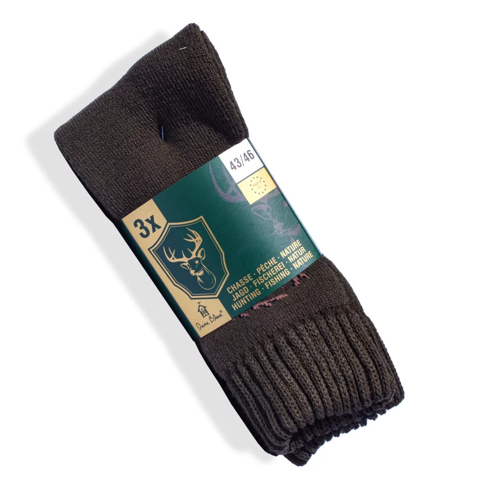 Csomagban lévő mennyiség: 3 pár - az egyik pár sima, a második szarvas motívummal, a harmadik kacsa motívummal a zokni mindkét oldalán. Sötétzöld-barna színű.