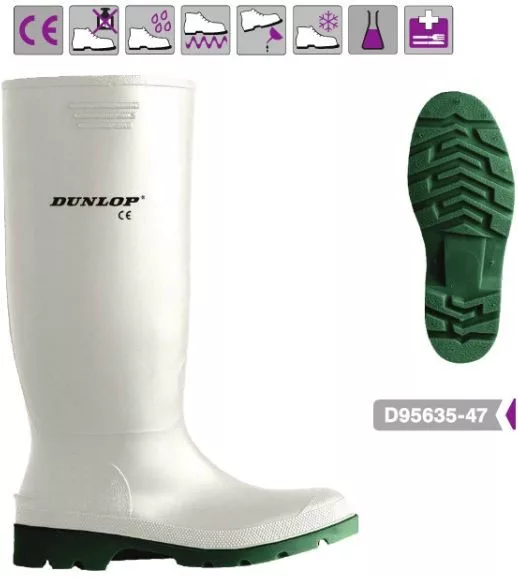 DUNLOP PRICEMASTOR Fehér élelmiszeripari ártalmak ellen, nitriltalpú, munkavédelmi csizma