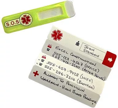 Vészhelyzet baleset esetén segítséget biztosító azonosító mely tartalmazza a dolgozó egészségügyi adatait és nevét. - Kisker jel