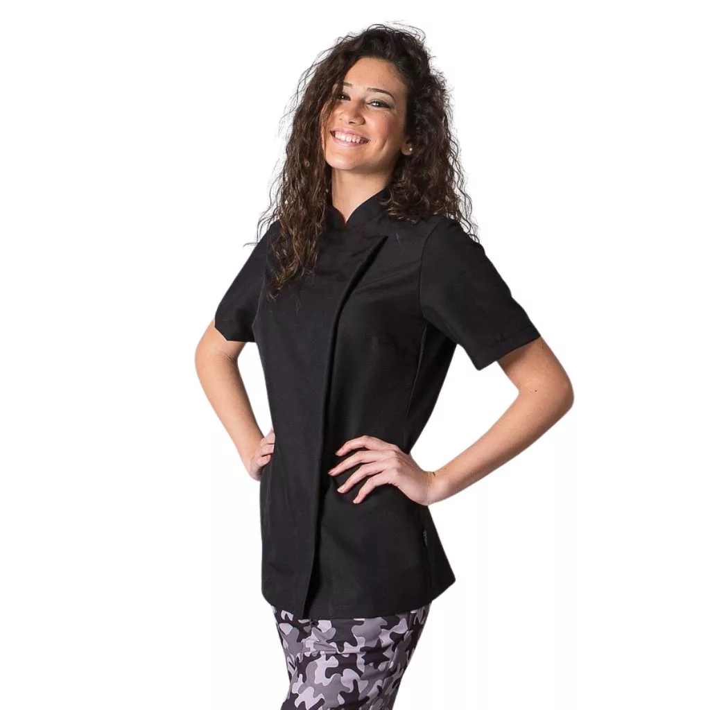 • Női, rövid ujjú séfkabát modern, átlapolt fazonnal