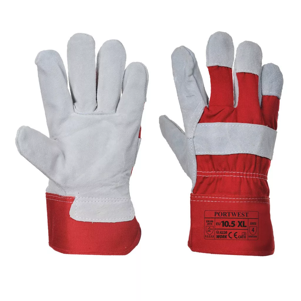 A marhabőrből, piros pamuttal kombinálva készülő bőrkesztyű gumírozott biztonsági mandzsettával rendelkezik, és ideális az építőipar és bányászat számára. Ujjperc védelemmel ellátva.