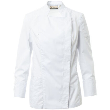 <ul><li>Szakácskabát mandarin gallérral, pamut twill és Lycra® T400® anyagból, kiváló rugalmas és légáteresztő tulajdonságokkal és kényelmes hálós anyaggal a háton, a hónaljnál és a hónalj alatt, hogy fokozza a légáteresztő képességet. Dupla soros záródás pattintható gombokkal, kihajtható szárny, mely egy szabadon álló gomb rögzítésével a mellkasra rögzíthető, mely a személyre szabott hajtóka és az innovatív V-nyak hatását kelti. Hosszú ujjú, látható, patentgombbal zárható mandzsettával. Ikonikus formájú folt a bal vállon, tónusos hímzéssel, tollzsebekkel kiegészítve. Praktikus okostelefon zseb a derekán.</li><li>Ripstop 58% pamut, 42% elastomultiester, 150 g/m<sup>2</sup></li><li>Hálós anyag: 100% poliészter</li><li>Méret: XS-2XL</li></ul>