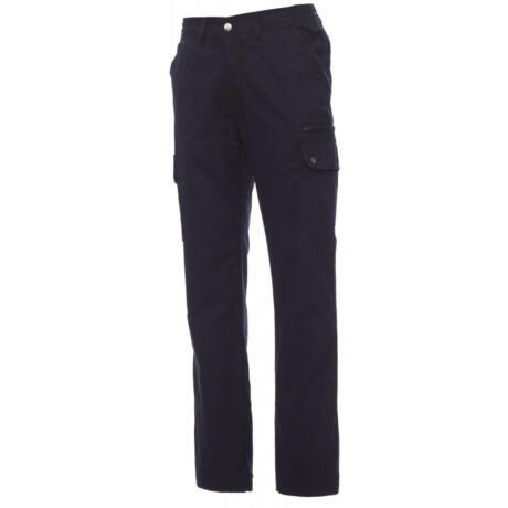 <ul><li>Poliészter flanel bélés (110 g/m<sup>2</sup>)</li><li>Oldalt gumírozott derék, övtartó</li><li>Fém gomb, cipzárral</li><li>Klasszikus első zsebek</li><li>Füles, patentos oldalzsebek</li><li>Bal oldalt cipzáras oldalzseb</li><li>Jobb oldalon mérőszalagtartó zseb</li><li>Gombos farzsebek</li><li>100 % pamut, 280  g/m<sup>2</sup></li><li>Méret: XS-5XL</li></ul>