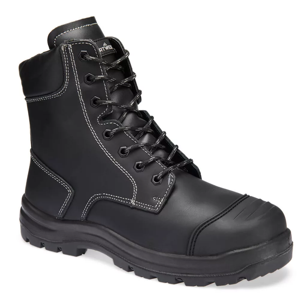 Teljes körű védelem, a bőr felsőrész minden időjárási körülménynek gátat szab. Magas fűzős stílusú, robusztus cipzárral a kényelmes illeszkedés és a megbízható támogatás érdekében a zord környezetben. Közvetlen befecskendezett PU gumi talp a legnagyobb tapadásért és az energiaelnyelésért