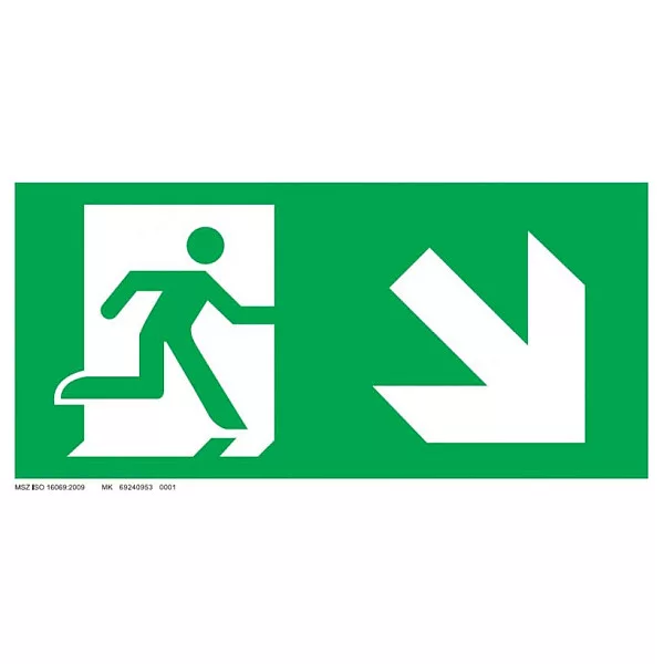 Menekülési út - jobbra le, ajtó bal oldalon UV tábla