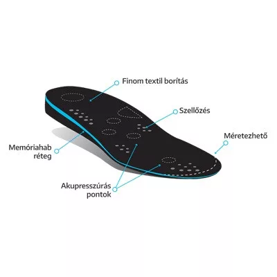 A felső finom szövet fedőréteg bőrbarát, komfortos érzetet nyújt, a rugalmas kialakítás pedig lehetővé teszi, hogy a talpbetét jól illeszkedjen különböző típusú lábbelikbe. A méretezhető kivitel biztosítja, hogy pontosan a megfelelő cipőmérethez igazítható legyen.