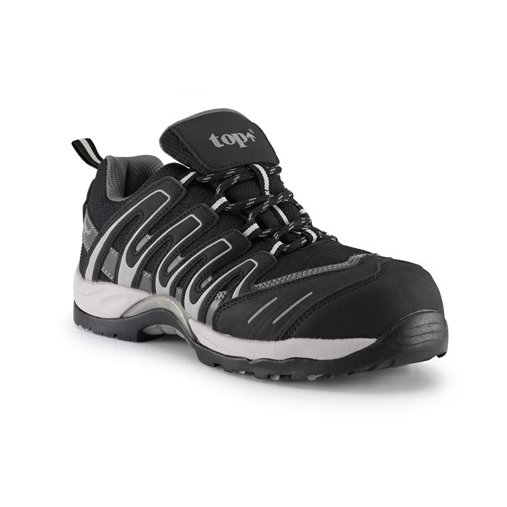 A TOP AGISZ S1P ESD SRC védőcipő modern megjelenésű, sportos munkavédelmi lábbeli, amely nehezen megkülönböztethető egy sportcipőtől. Kompozit orrmerevítője és kevlár talplemeze biztosítja a láb megfelelő védelmét leeső tárgyak és talpátszúrás ellen, miközben az EVA/gumi talp könnyű és rugalmas marad.