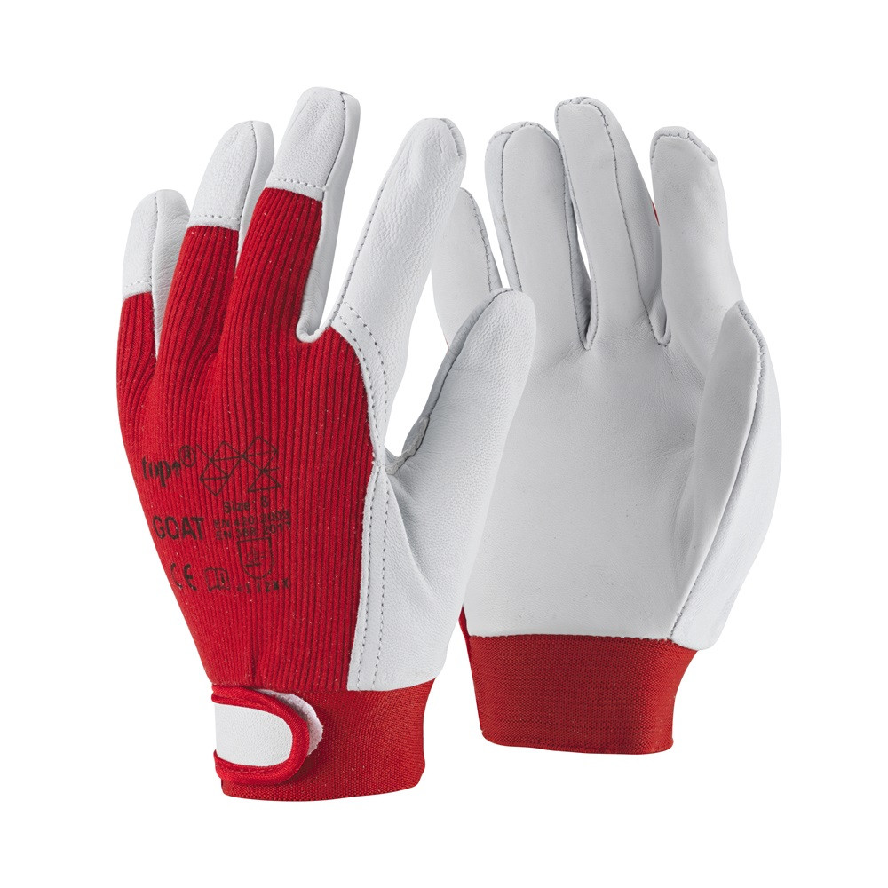 Sofőrkesztyű kecskebőr pamut TOP GOAT, tépőzáras mandzsetta, fehér/piros, 9