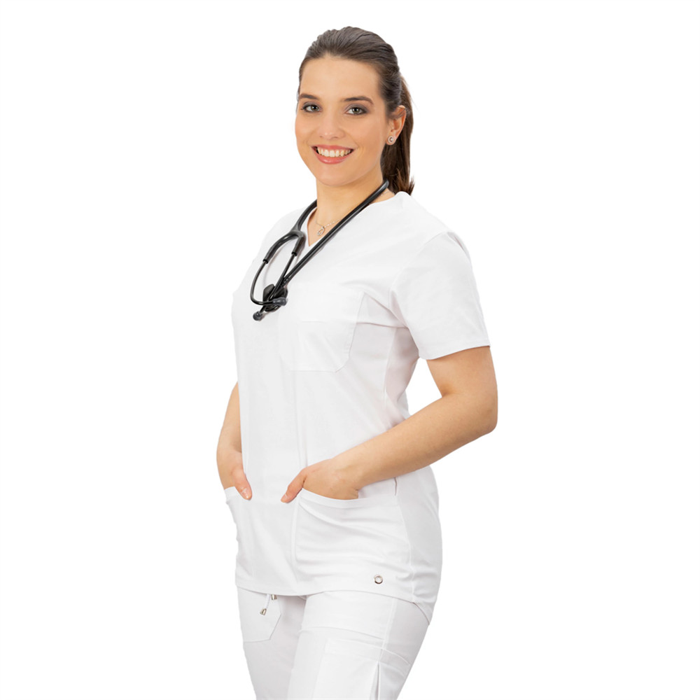 A TOP MEDORA női orvosi felső ideális választás, ha egy megbízható, komfortos és stílusos egészségügyi munkaruhát keresel, amely egész nap támogat a munkában.