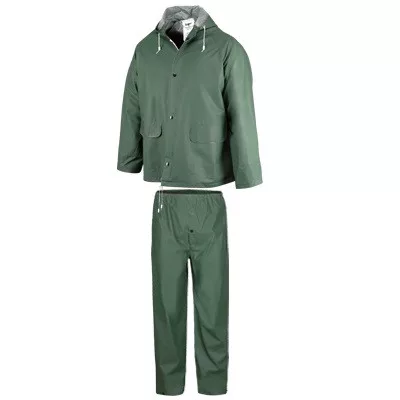 Az összehúzható kapucni és derékalj, a vízzáró ujjvégek, valamint a nagyméretű zsebek praktikus megoldásokat kínálnak a mindennapi használathoz. A klasszikus zöld szín és az ipari kivitel miatt a szett kiváló választás mezőgazdasági, építőipari és karbantartási munkákhoz.