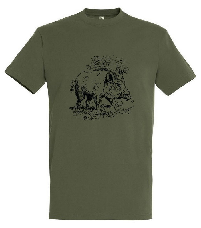 Póló (vaddisznó mintával) kereknyakú (100%pamut 190 g/m2) TOP, katonai szín, 3XL
