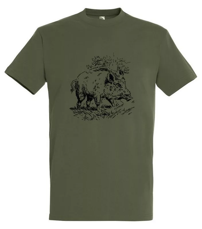 Póló (vaddisznó mintával) kereknyakú (100%pamut 190 g/m2) TOP, katonai szín, S