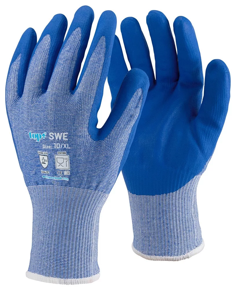 TOP SWE vágásbiztos védőkesztyű, nitril mikrohabos tenyér, kék, 9