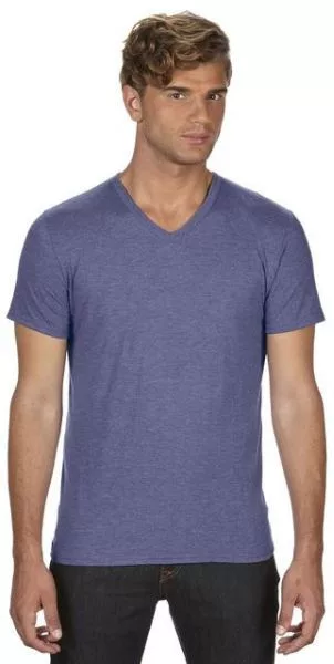 ANVIL (AN6752) nyári rövid ujjú férfi póló fésült pamut/poliészter pamut V nyakú oldalvarrott
