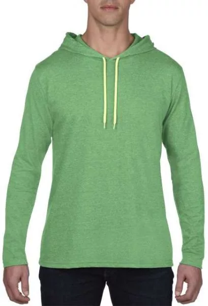 an987hgn-ny-s, ANVIL (AN987) nyári hosszú ujjú póló,/fésült pamut kapucnis, Hanga zöld/ neon