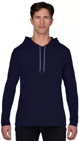 an987nv-dg-s, ANVIL (AN987) nyári hosszú ujjú póló,/fésült pamut kapucnis, Sötétkék/sötét
