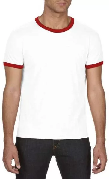 an988wh-re-s, ANVIL (AN988) nyári rövid ujjú póló,/fésült pamut környakas, Fehér/piros/White/Red