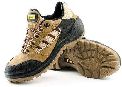 Biztonsági cipő acél orrmerevítővel, antisztatikus, csúszásgátló, sav- és olajálló PU/TPU talppal, energiaelnyelő sarokrésszel, valamint lélegző bőr (nubuk) és textil kombinálásával készült felsőrésszel