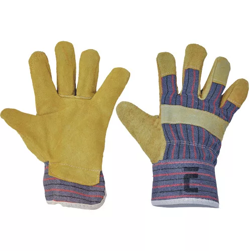 • kombinált védőkesztyű marha hasított bőrből • bélelt tenyér • pamut kézfej és mandzsetta