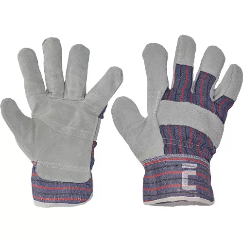 • kombinált védőkesztyű marha hasított bőrből • bélelt tenyér , pamut kézfej és mandzsetta