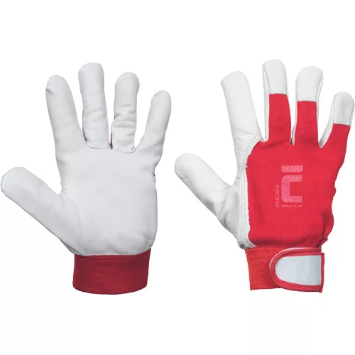 • varrott védőkesztyű finom kecskebőr tenyérrel, pamut szövet kézfejjel • bőr körmvédő • rugalmas, tépőzáras mandzsetta