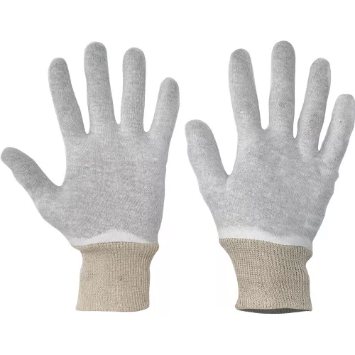 • finom kötött kesztyű fehérített pamut/poliészterből, rugalmas mandzsettával