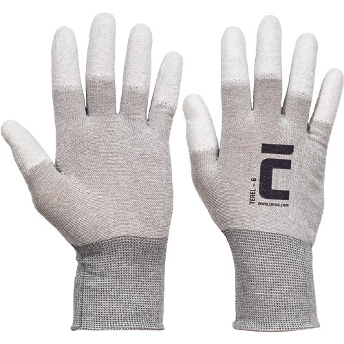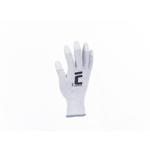 • kötött, varratmentes, antisztatikus, nylon kesztyű integrált szénszállal, ujjhegyen PU mártással, rugalmas mandzsettával