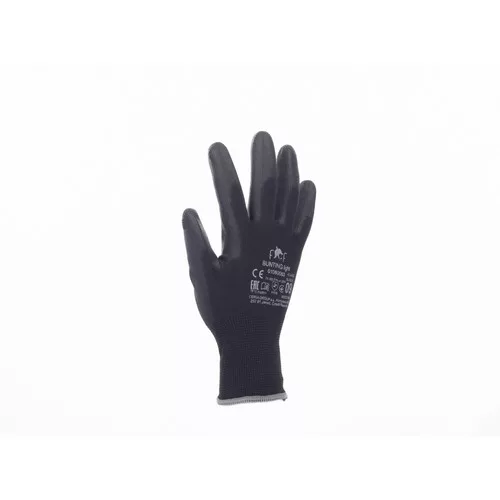 • kötött PES kesztyű PU mártott tenyérrel, rugalmas mandzsettával