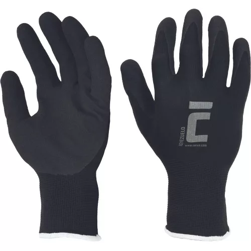• kötött poliészter védőkesztyű, csiszolt nitril mártással • rendkívül kopásálló, több mint 15 000 ciklust bír • kiváló tapadást biztosít olajos és nedves környezetben • tűfinomság: 13 GG