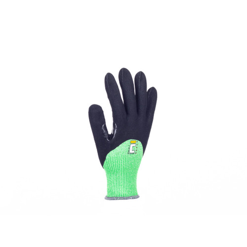 • varrat nélküli, kötött kesztyű, nitrilbe mártva , homokszemcsés felülettel, F szintű vágásvédelemmel • megerősítés a hüvelyk- és mutatóujj között • alkalmas éles és zsíros alkatrészek, üveg kezelésére vagy zsíros fémekkel és fémlemezekkel történő munkához