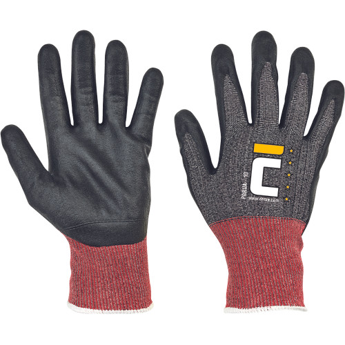 • kötött védőkesztyű egyedi, vágásálló GOLDSILK anyagból, amely nem tartalmaz üveg-, kőzet-, vagy acél szálakat • a nitrilhab bevonat védelmet nyújt enyhén olajos környezetben és tökéletes fogást biztosít