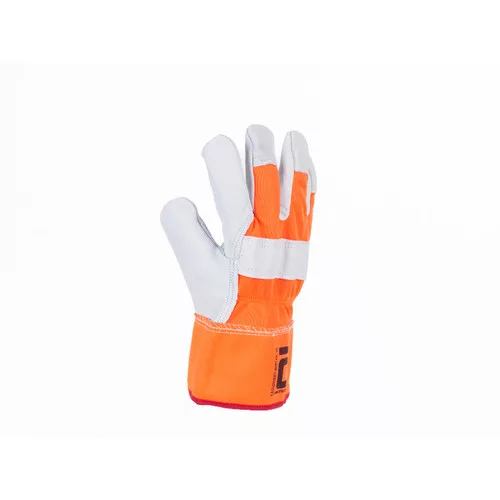 • melegen bélelt kombinált kesztyű • marha színbőr tenyér • poliészter szövet kézfej • merev mandzsetta • figyelemfelkeltő sárga és narancs színekben