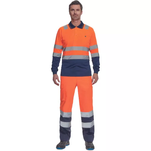 • Hi-Vis hosszú ujjú póló 5 cm széles fényvisszavető csíkokkal • 3 gombbal záródó nyakkivágás • rugalmas mandzsetta • kontrasztos színű gallér • 1 mellzseb