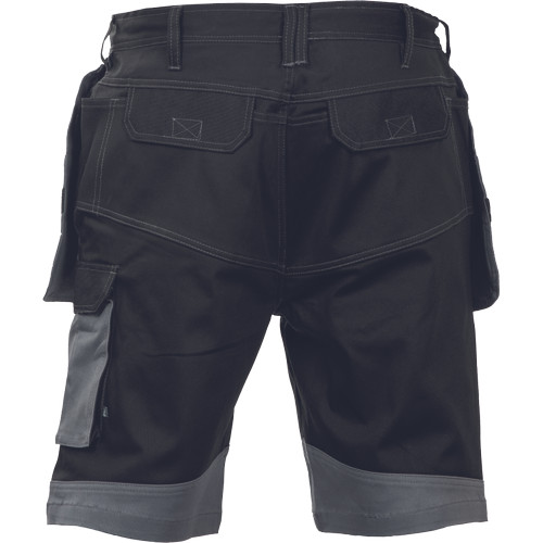 • férfi munkanadrág rugalmas derékkal • elöl 2 szerszámzsebbel, 1 cipzáras oldalzsebbel, 1 zsebfedős oldalzsebbel a szárakon, 2 zsebfedős hátsó zsebbel, D-gyűrűvel • dekoratív varratok
