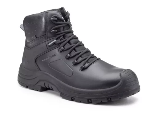 * fekete teljes színbőr felsőrész vízálló membránnal, kompozit lábujjvédő és flexibilis, fémmentes, átszúrás elleni textil talplemez