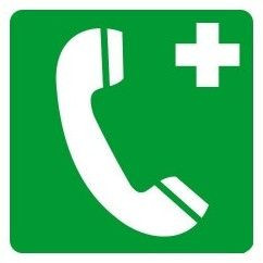 Segélyhívó telefon helyét jelölő, öntapadós tábla